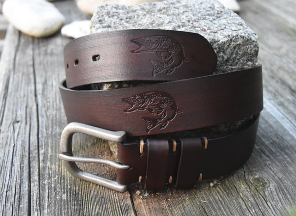Skórzany pasek z tłoczeniem szczupaka (4x wytłaczanie na całej długości taśmy)