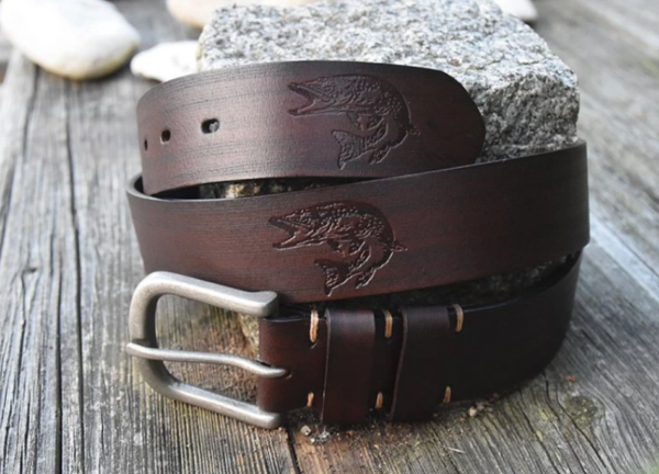 - Skórzany pasek męski dla wędkarza „SZCZUPAK”