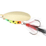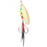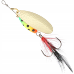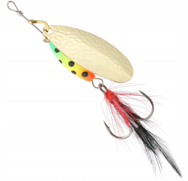 Błystka obrotowa Mikado M-GRUB nr 3 Złota/Firetiger to obrotówka o szerokiej paletce oraz ciężkim, malowanym korpusie, dzięki któremu możemy obłowić najgłębsze miejsca w rzece oraz podwodne górki. Dodatkowy chwost na kotwiczce podnosi atrakcyjność oraz zwiększa skuteczność zacięcia.