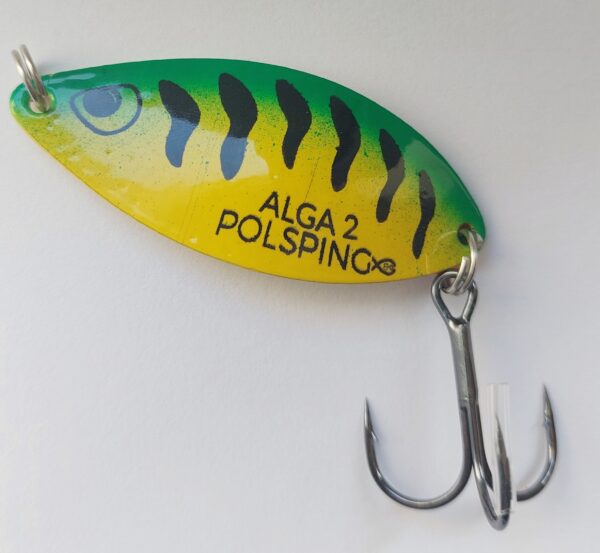 Blachy o nazwie Alga nikomu przedstawiać nie trzeba. Wahadłówka o szerokim profilu, posiadająca silną akcję, widoczne odbicie światła i mocną falę akustyczną. Ten model doskonale sprawdza się na płytkich i nie dużych jeziorach jak też stawach i rzekach z nie dużym uciągiem nurtu. Nowa wersja kolorystyczna sprawdzi się przy słonecznej pogodzie i czystej wodzie.