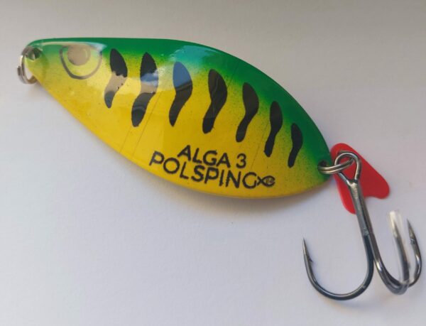 Blachy o nazwie Alga nikomu przedstawiać nie trzeba. Wahadłówka o szerokim profilu, posiadająca silną akcję, widoczne odbicie światła i mocną falę akustyczną. Ten model doskonale sprawdza się na płytkich i nie dużych jeziorach jak też stawach i rzekach z nie dużym uciągiem nurtu. Nowa wersja kolorystyczna sprawdzi się przy słonecznej pogodzie i czystej wodzie.