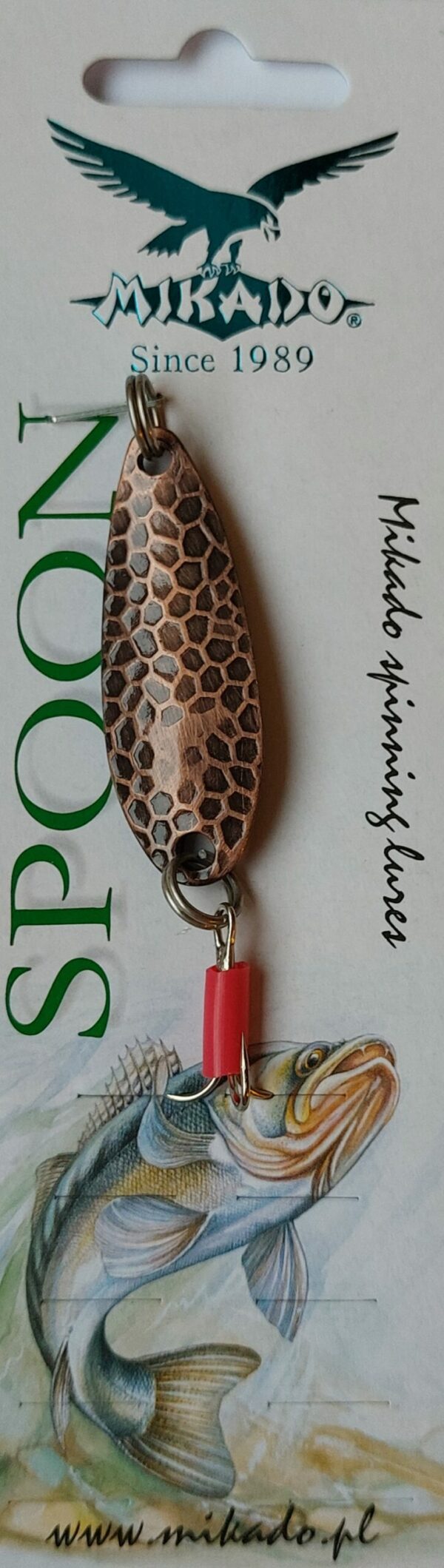 Doskonała wahadłówka o klasycznych kształtach przetestowana przez kilka pokoleń wędkarzy. Mocne kółka łącznikowe, ostre kotwice i trwałe pokrycie galwaniczne połączone z odpowiednim tłoczeniem i wzorem łuski to recepta na najskuteczniejsze przynęty. Na trzonku kotwicy umieszczono czerwona, plastikową rurkę pełniącą rolę dodatkowego wabika. Szczupaki, bolenie, sandacze, sumy, okonie, klenie i belony to ryby do połowu których polecana jest błystka wahadłowa Mikado.