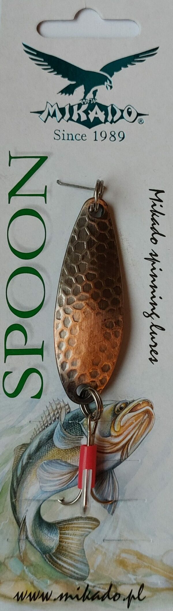 Doskonała wahadłówka o klasycznych kształtach przetestowana przez kilka pokoleń wędkarzy. Mocne kółka łącznikowe, ostre kotwice i trwałe pokrycie galwaniczne połączone z odpowiednim tłoczeniem i wzorem łuski to recepta na najskuteczniejsze przynęty. Na trzonku kotwicy umieszczono czerwona, plastikową rurkę pełniącą rolę dodatkowego wabika. Szczupaki, bolenie, sandacze, sumy, okonie, klenie i belony to ryby do połowu których polecana jest błystka wahadłowa Mikado.