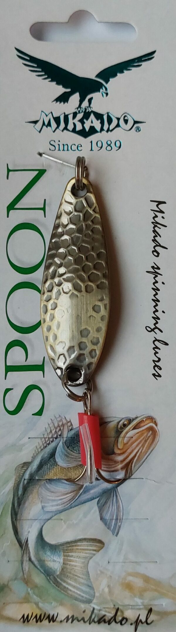 Doskonała wahadłówka o klasycznych kształtach przetestowana przez kilka pokoleń wędkarzy. Mocne kółka łącznikowe, ostre kotwice i trwałe pokrycie galwaniczne połączone z odpowiednim tłoczeniem i wzorem łuski to recepta na najskuteczniejsze przynęty. Na trzonku kotwicy umieszczono czerwona, plastikową rurkę pełniącą rolę dodatkowego wabika. Szczupaki, bolenie, sandacze, sumy, okonie, klenie i belony to ryby do połowu których polecana jest błystka wahadłowa Mikado.
