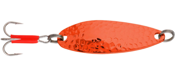 Hammer Mikado Fluo – posiadają mocne kółka łącznikowe, ostre kotwice i trwałe pokrycie galwaniczne połączone z odpowiednim tłoczeniem i wzorem łuski. Jaskrawo pomalowane modele doskonale sprawdzą się również na morzu, gdy polujemy na belony i morskie trocie.
