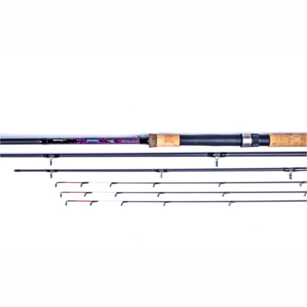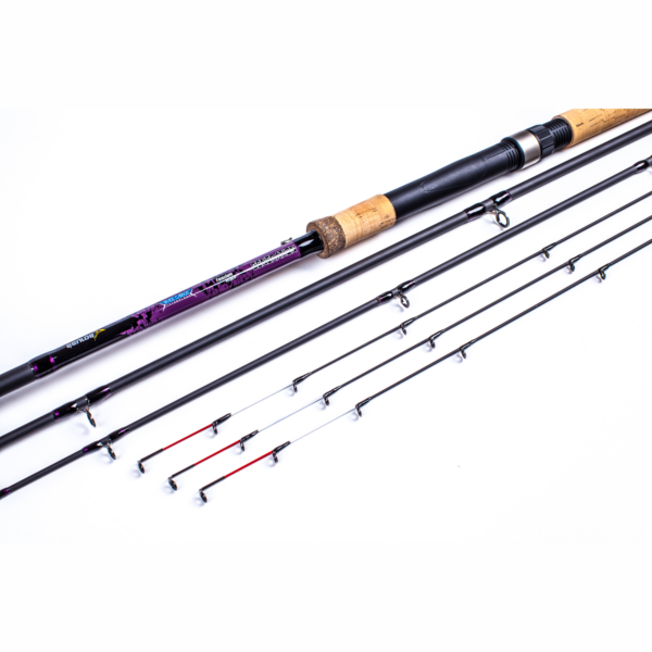 Wędka świetnie wyważona o sztywnej akcji, pozwalająca łowić precyzyjnie na dalekich odległościach. Dodatkowe wzmocnienie łączeń elementów krzyżową matą węglową dla większej mocy i bezpieczeństwa podczas rzutów. Trzy wysokiej jakości węglowe szczytówki o różnej krzywej ugięcia z świetnie widocznymi końcówkami w kolorze czerwono-białym pozwolą dostrzec najdelikatniejsze branie.