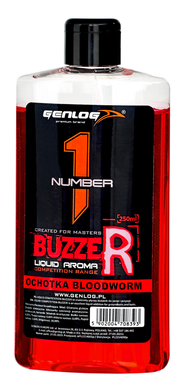 Liquid Buzzer to produkt najwyższej jakości, który jest łatwostrawny dla ryb, umożliwiając im łatwo wchłonąć składniki odżywcze. Buzzer jest idealny do stosowania jako zalewa do kulek, pelletu, ziaren lub jako dodatek i dopalacz do zanęt. Można go stosować do produkcji kulek proteinowych, wszystkich rodzajów mieszanek słodkich, owocowych, fantastycznie komponuje się z proteinami mlecznymi. Sprawdza się, także z miksami przyprawowymi i rybnymi, tworząc ciekawe smakowo-zapachowe kombinacje.